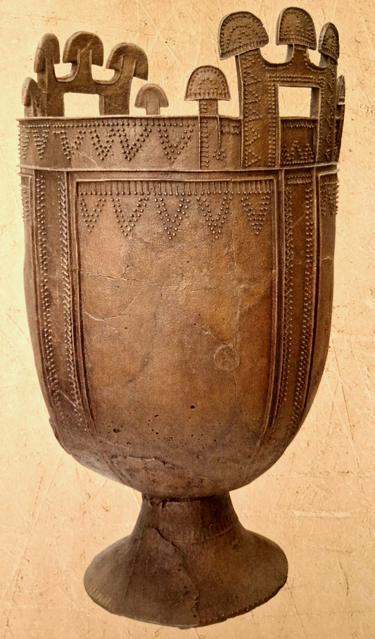 • Многочисленные ремонты: Котёл чинили много раз уже в древности. На него ставили грубые бронзовые заплатки, переприливали отвалившиеся части. Видно, что ценили его не за практичность, а за сакральный статус. Его берегли и пытались сохранить как великую реликвию.